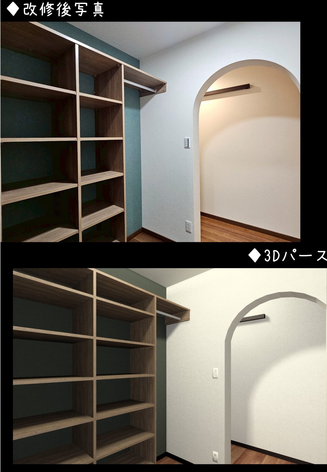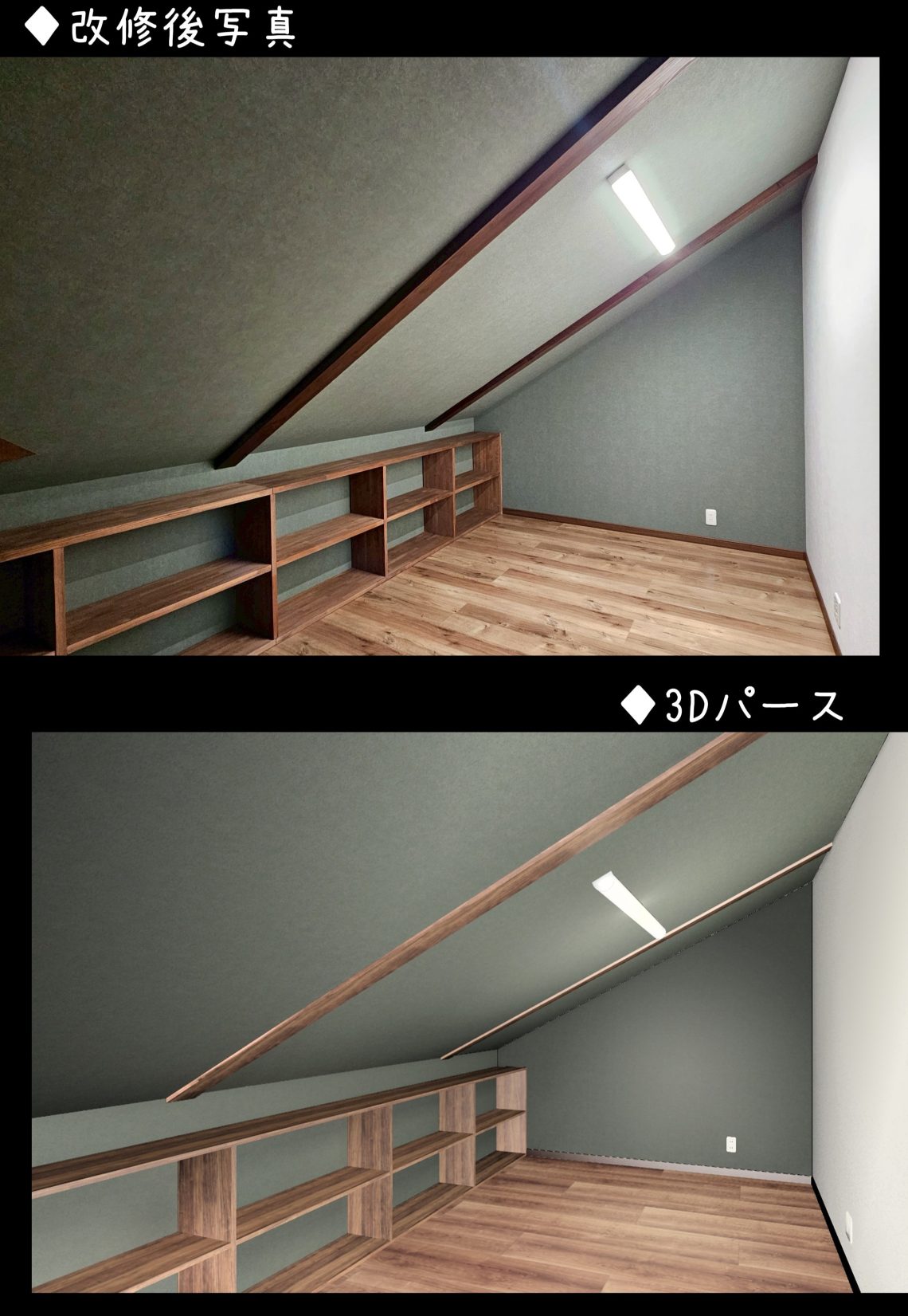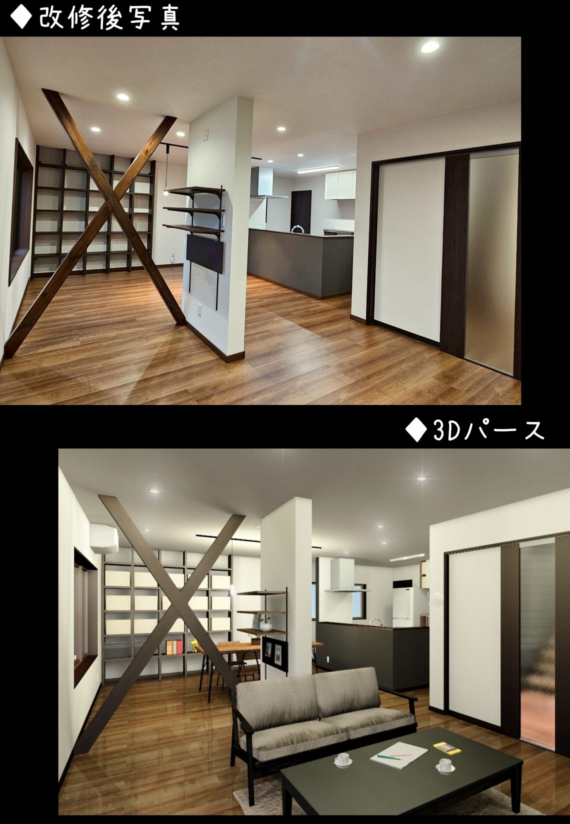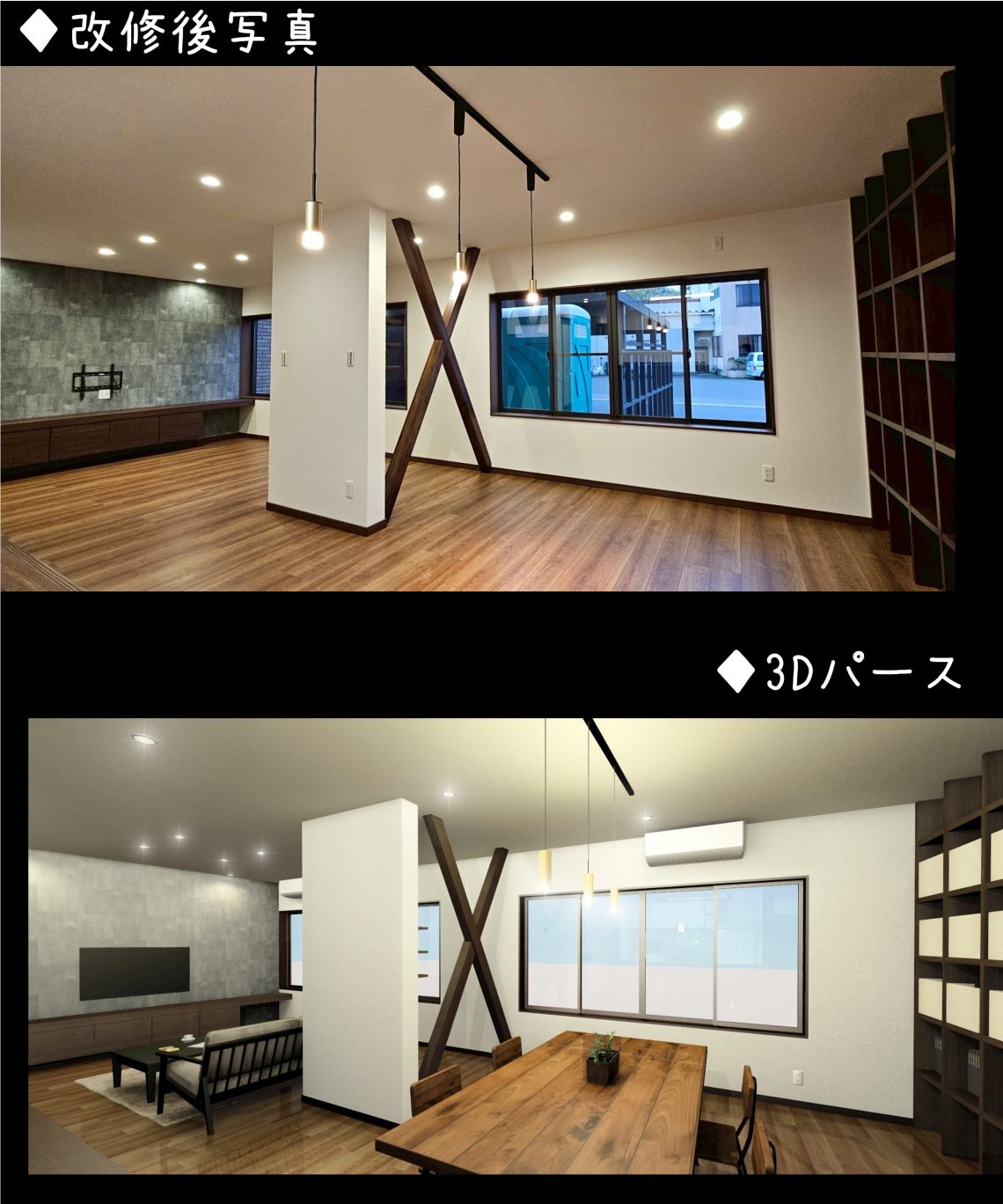 打合せ時にお出ししている3Dパースと改修後の写真を見比べながらご覧ください。